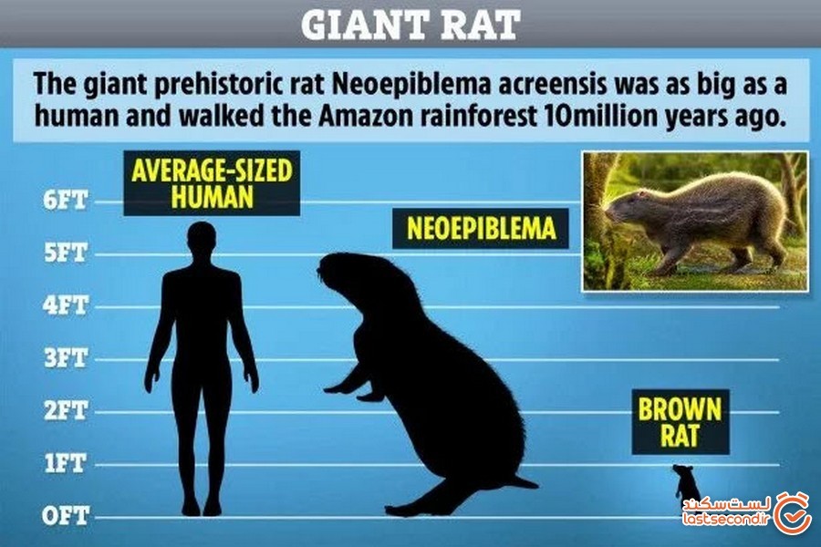 آثار حضور یک موش غول پیکر با جثهای به اندازه یک انسان در آمریکای جنوبی کشف شده است. باستان شناسانی که در محل حفاری اکری در غرب آمازون برزیل کار میکردند، ۲ فسیل جمجمه را کشف کردند که یکی تقریبا به طور کامل حفظ شدهبود و دیگری قطعهای از آن باقی مانده بود. این جانور، با نام نیئو اِپیبلِاما اِکرینسِس 10 میلیون سال پیش زندگی میکرده است و مطالعات جدید مغزی بر روی آن انجام گرفته است. همراه ما باشید تا ببینیم، نیئو اِپیبلِاما اِکرینسِس چه مشخصاتی داشته است!